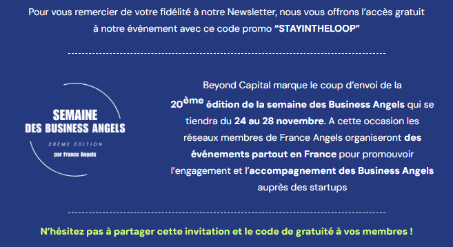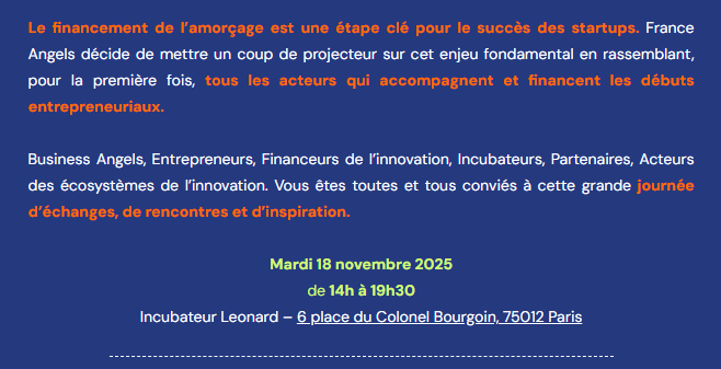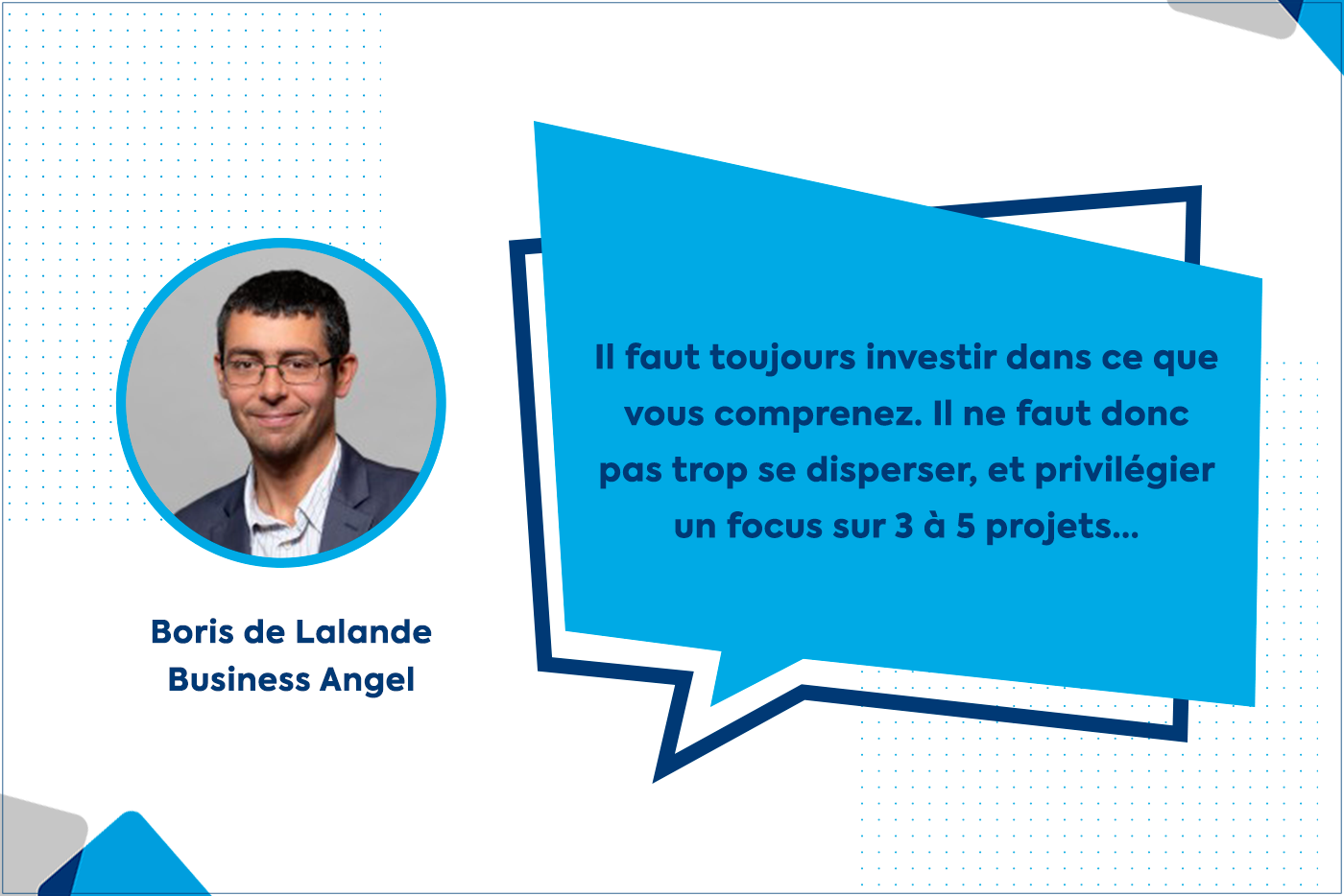 6) Un conseil à quelqu'un qui souhaiterait se lancer dans l'aventure de business angel ? Il faut toujours investir dans ce que vous comprenez. Il ne faut donc pas trop se disperser, et privilégier un focus sur 3 à 5 projets (tout dépend du temps et de l'énergie que vous avez à y consacrer).