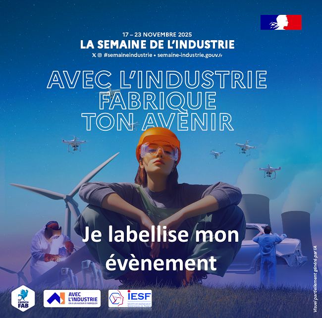 | La Semaine de l'Industrie, c'est bientôt ! IESF, membre du comité de pilotage de la Semaine de l'Industrie depuis de nombreuses années, vous invite à participer à l'édition 2025 qui se déroulera du 17 au 23 novembre. Comme chaque année, ce rendez-vous incontournable vise à promouvoir l'industrie et à changer le regard des jeunes en déconstruisant les stéréotypes qu'ils peuvent avoir quant à ces métiers. Vous organisez un évènement gratuit mettant en lumière l'industrie et ses métiers ? Labellisez-le ! En savoir plus et labelliser. |