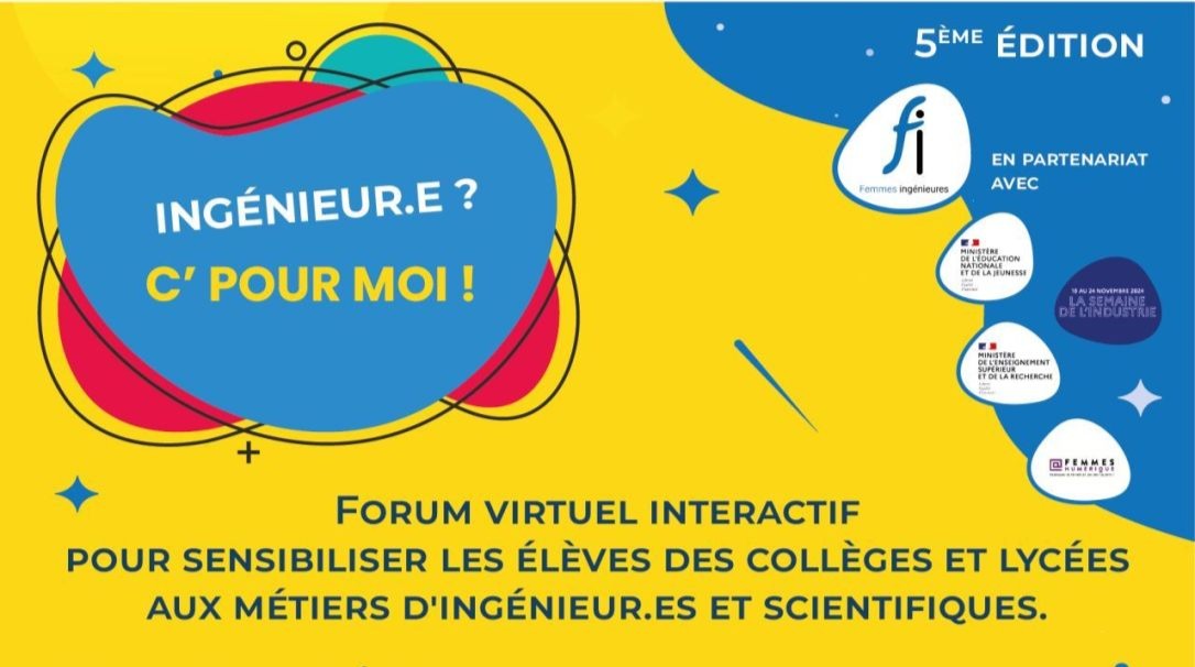 |  | "Ingénieur.e ? C’ pour moi" Le 27 novembre, Femmes Ingénieures et son partenaire la Fondation Femmes & Numérique organisent la 5ème édition l'évènement "Ingénieur.e ? C' pour moi". Dans ce cadre, elles recherchent des intervenants et intervenantes bénévoles pour présenter leur parcours lors d'un forum des métiers virtuel. Vos témoignages sont attendus pour enrichir l'évènement. S'inscrire en tant qu'intervenant(e). |