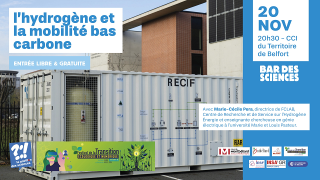 |  | Conférence "De l'hydrogène à la mobilité bas carbone" IESF Bourgogne-Franche-Comté coorganise, avec le Pavillon des Sciences de Belfort-Montbéliard et les ingénieurs de l'INSA, une conférence le 20 novembre à Belfort sur l'hydrogène et la mobilité bas carbone. Découvrez l'avenir de l'hydrogène dans les mobilités bas carbone aux côtés de Marie-Cécile Pera, directrice de FCLAB, centre de recherche et de service sur l'hydrogène énergie et enseignante-chercheuse en génie électrique à l’université Marie et Louis Pasteur de Franche-Comté. En savoir plus et s'inscrire. | | |
